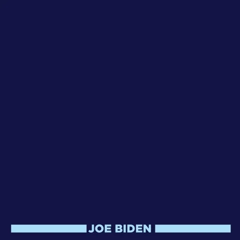 Text gif. Bold white and baby blue text pops up on a navy blue background followed by individual key words in heavier type. Text, "Democracies are rising to the moment and the world is clearly choosing the side of peace and security. Joe Biden."See more biden GIFs