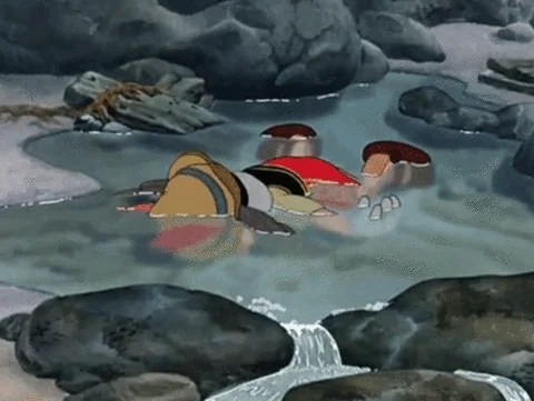 GIPHYDisney gif. Cartoon Pinocchio lays face first in a shallow pool of water with his legs sprawled out like he’s dead. See more disney GIFs